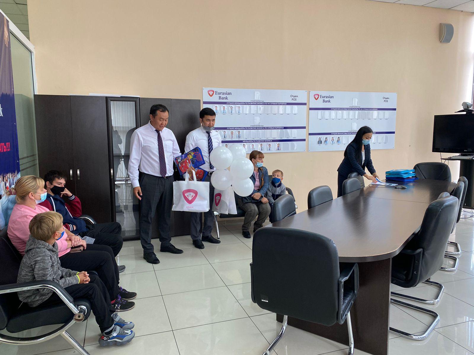 В рамках акции "Дорога в школу" Центр территориального управления (Филиал 5) и АО Евразийский банк оказали благотворительную помощь детям из многодетных и малообеспеченных семей в виде портфелей и сертификатов в детский магазин. Спасибо за доброе сердце, милосердие и поддержку.